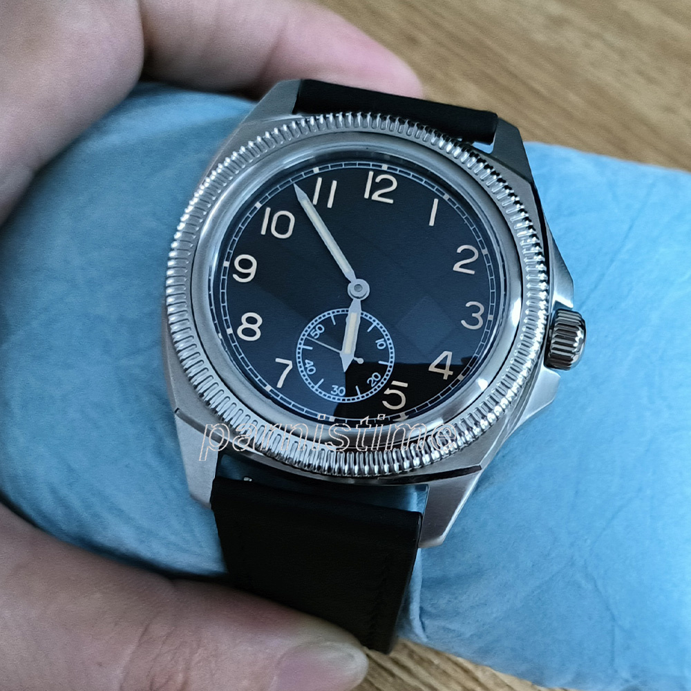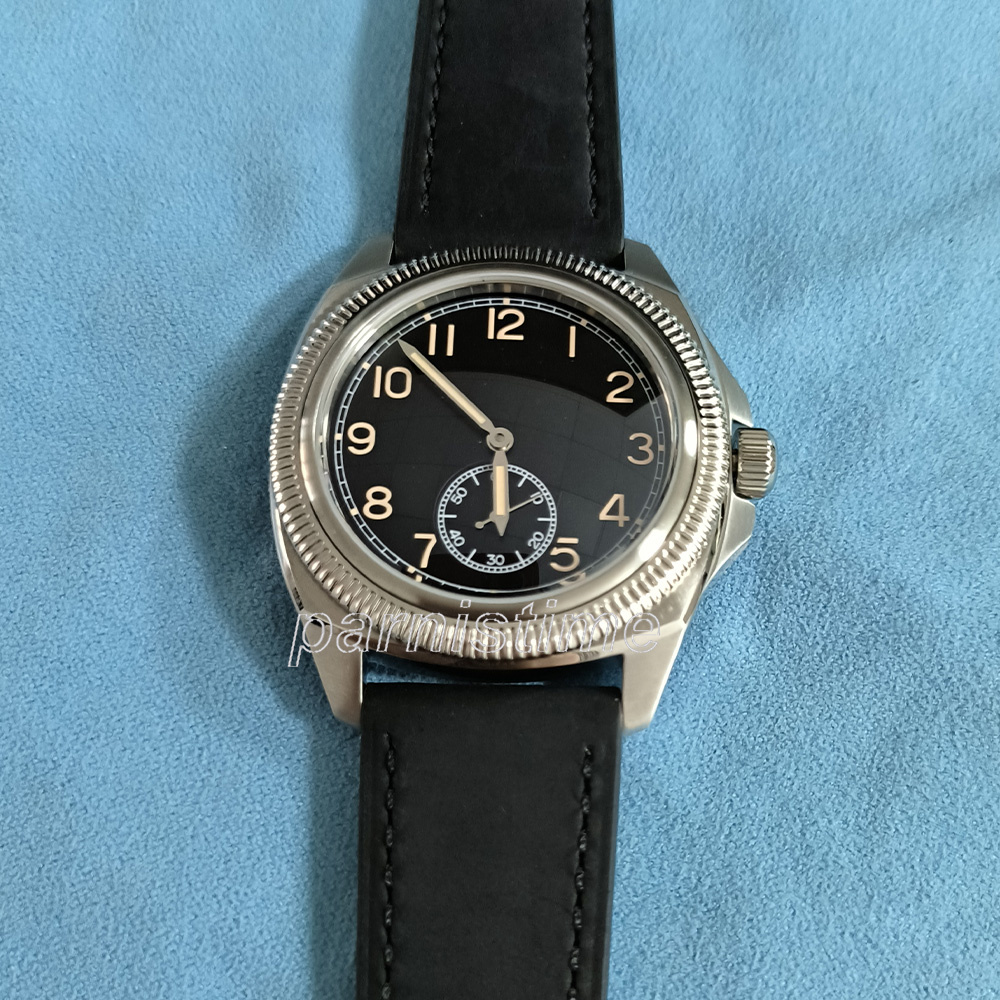 New Parnis 41mm Silver Case Mechanical Men Watch Black Leather Strap Automatic Self-Wind Men's Sports Watches